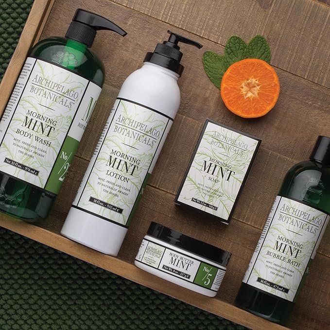 - Morning Mint Body Wash: Begin each day with this 33 Fl Oz bottle of Morning Mint moisturizing body wash, infused with invigorating notes of mandarin, wild mint, and fresh basil; this shower gel for women and men offers a refreshing experience, transforming your daily routine into a luxurious ritual