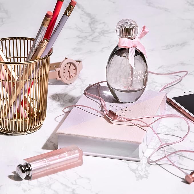 - LOVELY WITH A TWIST. Born Lovely arrives in a re-imagined design of the classic Lovely release. Adorned with a pink decorative grosgrain bow and capped with clear glass, Born Lovely is a charming addition to your nightstand or perfume collection.