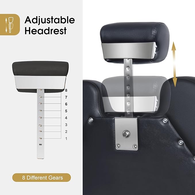 - High Quality Leather: Exquisite stitching makes the chair surface stronger and adds a touch of beauty to this barber chair.High-quality textured satin PU leather that withstands more than 40,000 rubs.And it is waterproof and easy to clean.