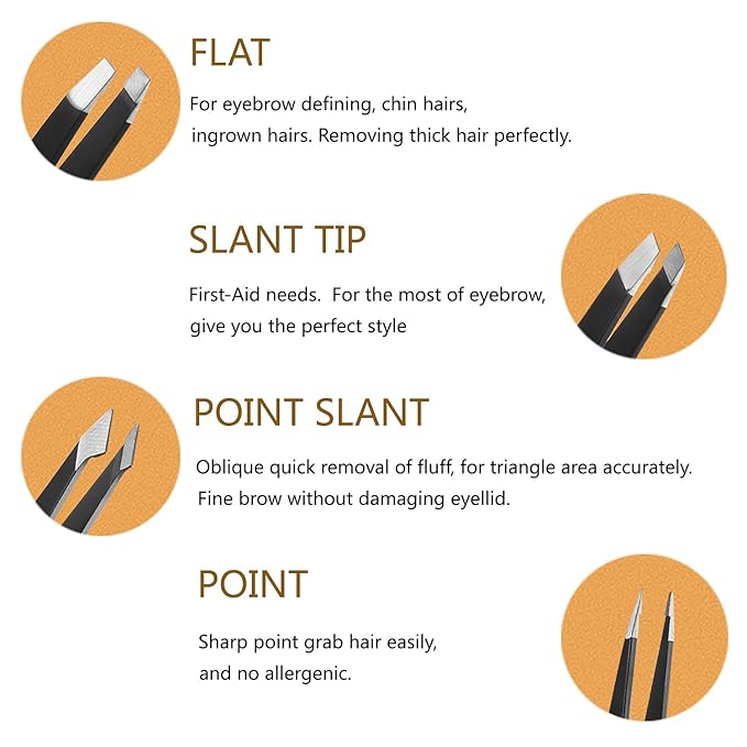 - Flat,Angled,Pointed and Slant tweezers to meet a variety of needs.