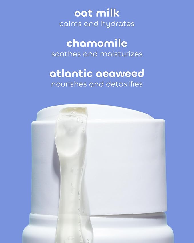 - Moisturizing Body Wash: With soothing oat milk, chamomile, shea butter, and sustainably harvested seaweed, this relaxing cleanser gently nourishes & restores moisture while promoting a better night’s sleep.