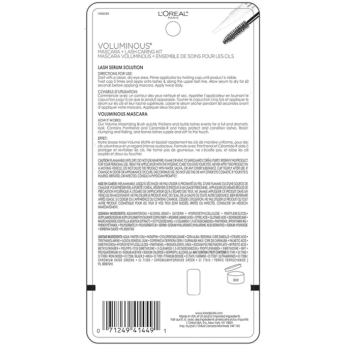 L'Oreal Paris Lash Serum + Voluminous Washable Blackest Black Mascara 0.25 Fl Oz Double pack