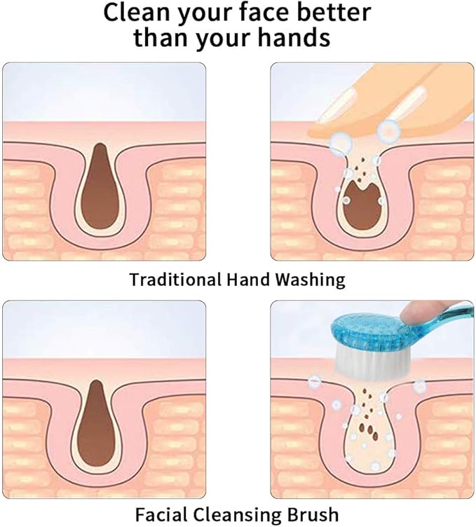 - FEATURES - Exfoliating brush can extra cleansing of the face, soft yet deep cleans, gentle and elastic bristles can clean the pores of dirt that can't be washed by fingers; Stimulating blood flow, can help skin absorbing the skincare products effectively, make facial skin rejuvenate