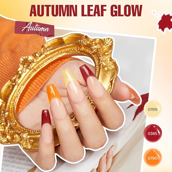 - Classical Gel Nail Polish Kit: 32 iconic and cutting-edge shades: maroon red, dark red, maple leaves orange, pumpkin yellow, glitter gold, walnut brown; this fall tones set not only complements your style but also reflects your individuality