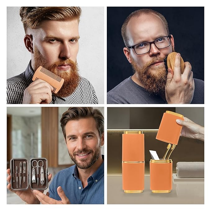- 🧔【 Beard Grooming & Spa Set 】21pcs uxury at-home spa kit contains: aftershave balm, shave gel, shave oil, beard comb, beard brush, 24k gold bath bomb, bubble bath, shower gel, lip balm, portable toothbrush cup, manicure set, bath uff, pumice, leather cosmetic bag