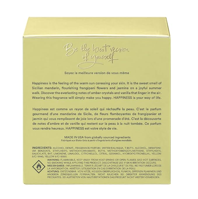- Your citrus happy perfume: Happiness in a bottle is a beautiful modern scent. It will give you the feeling of a relaxing sunny summer day. It is an uplifting mood-enhancing citrus fragrance that you'll love. Composed by perfume experts this unique perfume spray will simply make you happy. Citrus is known for its awakening powers, energy and sparkle. Happiness is your way of life!