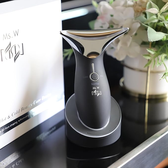 Ms.W Red Light Neck Face Massager, Facial Massager with Hot & Cold Modes for Skin Care, Vibration for Skin Tightening and Rejuvenation(Black)