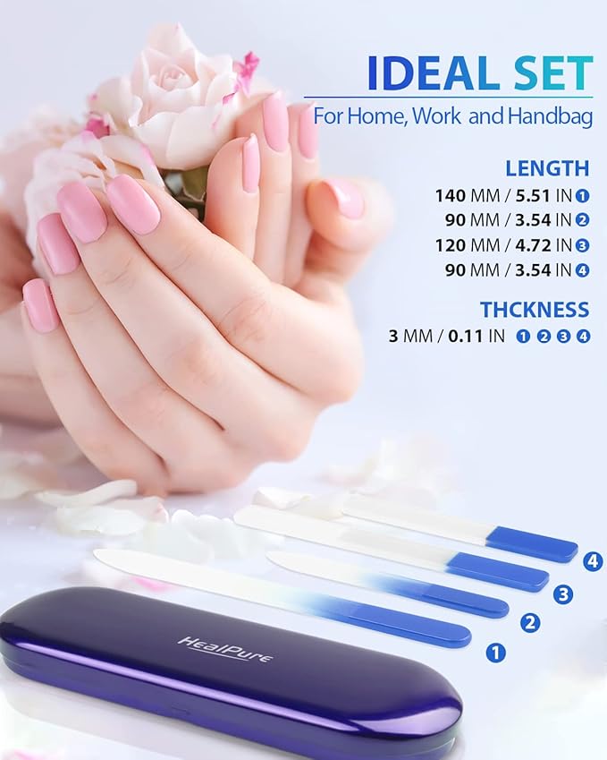 - 【Ideal Nail Manicure Tool】: 2PC tempered glass nail buffer files and 2PC nano glass nail shiners, not only shape nails, but also polish natural nails. Perfect for all types of nails: fingernails, toenails, acrylic nails and natural nails. Suitable for home DIY and salon.