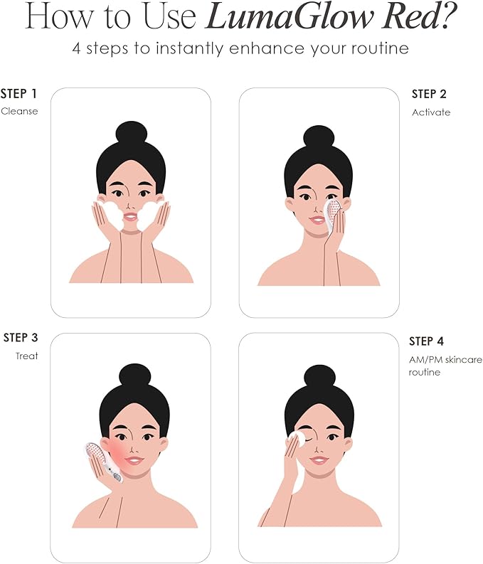 - ⭕ EASY TO USE FEATURES - The LumaGlow features 2 operating modes: continuous and pulsating. Choose continuous for prolonged exposure and pulsating for quick bursts of light energy. Based on your desired duration per session, choose from 1 minute, 3 minutes, 5 minutes, 12 minutes, or 120 minutes.