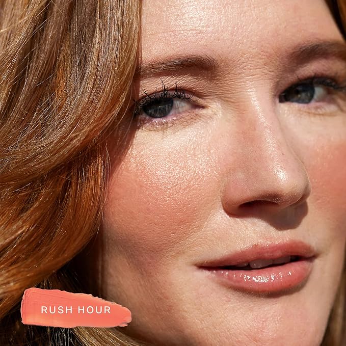 - Multi-Use Cream Blush + Tinted Lip Balm - This silicone-free tinted balm melts into skin without cakiness or harsh lines, leaving behind a radiant, sun-kissed glow. It doubles as a lip product, adding a juicy pop of color wherever you wear it. "Rush Hour" is a luminous peach.