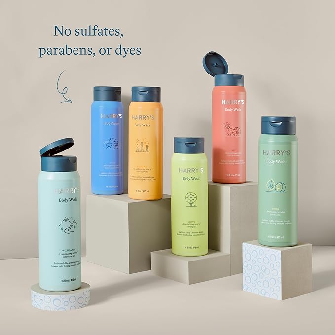 - HARRY'S MEN'S BODY WASH - Our body wash cleanses deeply without drying out. Some mens body wash use sulfates to create lather, leaving your skin dry and sensitive. To remedy that, we chose gentle ingredients for our shower gel that are made without sulfates, parabens, or dyes.