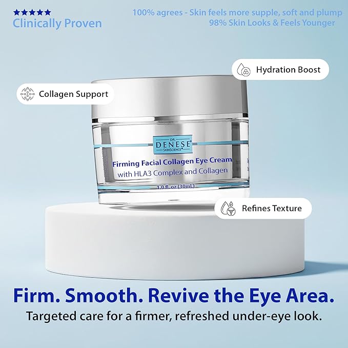 Dr. Denese SkinScience Firming Facial Collagen Eye Cream 1oz – Hydrating Under Eye Treatment with Hyaluronic Acid, Peptides & Ceramides for Puffiness, Dark Circles, Fine Lines – Cruelty-Free Skin Care