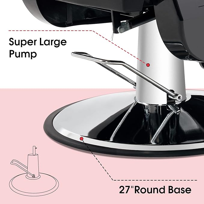 - HIGH QUALITY LEATHER: Exquisite stitching makes the chair surface stronger and adds a touch of beauty to this barber chair.High-quality textured satin PU leather that withstands more than 40,000 rubs.And it is waterproof and easy to clean.