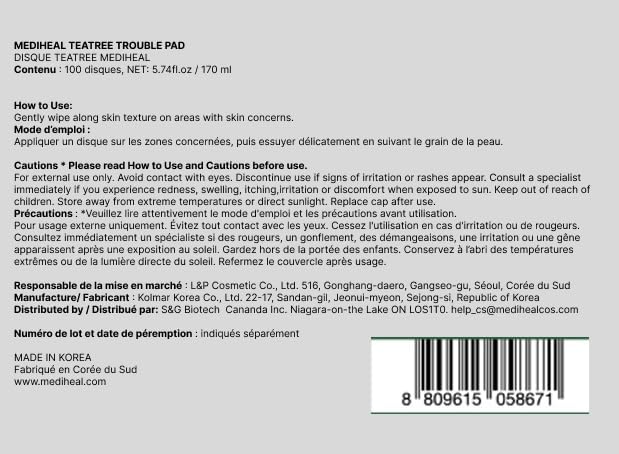 MEDIHEAL Teatree Trouble Pad - Square Cotton Facial Toner Pads with Tea Tree & Lactobacillus - Soothing to Calm Sensitive & Acne Prone Skin- Vegan Face Gauze 100