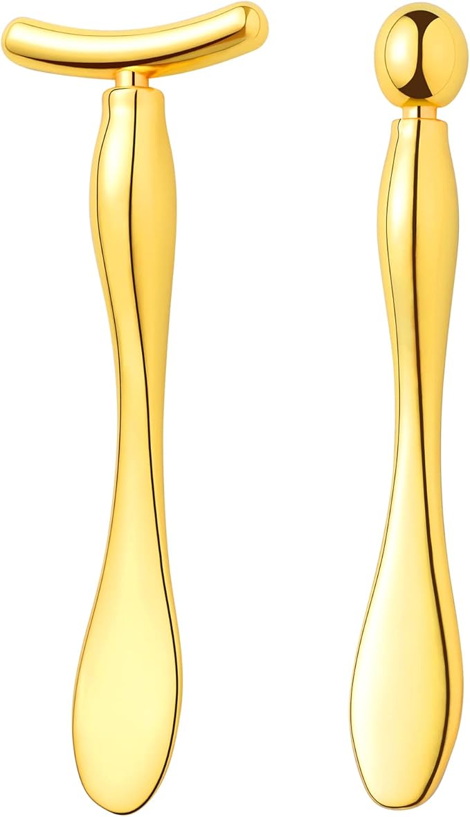 2 Pcs Metal Eye Cream Applicator Face Roller Massager Tool,Eye Massage Wand Stick Girls Women Facial Massager for Reducing Puffiness Wrinkle