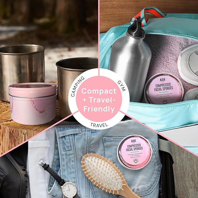 AOA Studio 100-Count Compressed Facial Sponges 100% Natural Cosmetic Spa Sponges for Facial Cleansing, Exfoliating Mask, Remove for Makeup, Dead Skin, and Dirt (100 counts, Pink)