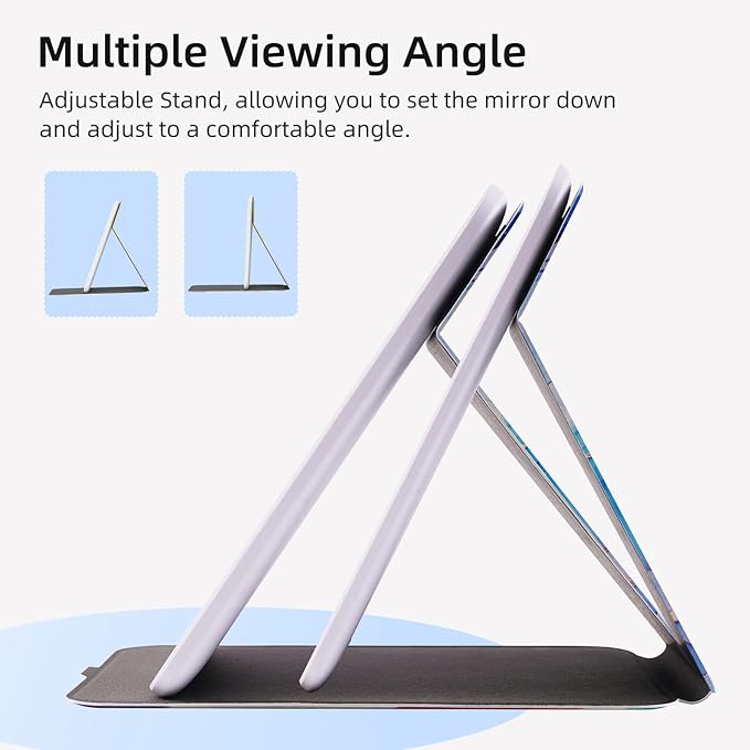 - 🛩️𝐏𝐨𝐫𝐭𝐚𝐛𝐥𝐞 𝐓𝐫𝐚𝐯𝐞𝐥 𝐌𝐚𝐤𝐞𝐮𝐩 𝐌𝐢𝐫𝐫𝐨𝐫:This makeup vanity mirror in ipad mini size with lights in folding design.The slim, lightweight,compact design with a Leather protection makes the Eclipse your new travel buddy.It is easy to put this travel mirror into your cosmetic bag without any broken worries,you can take it everywhere for makeup conveniently.And have sturdy standing, can stand stable on the table or any flat surface