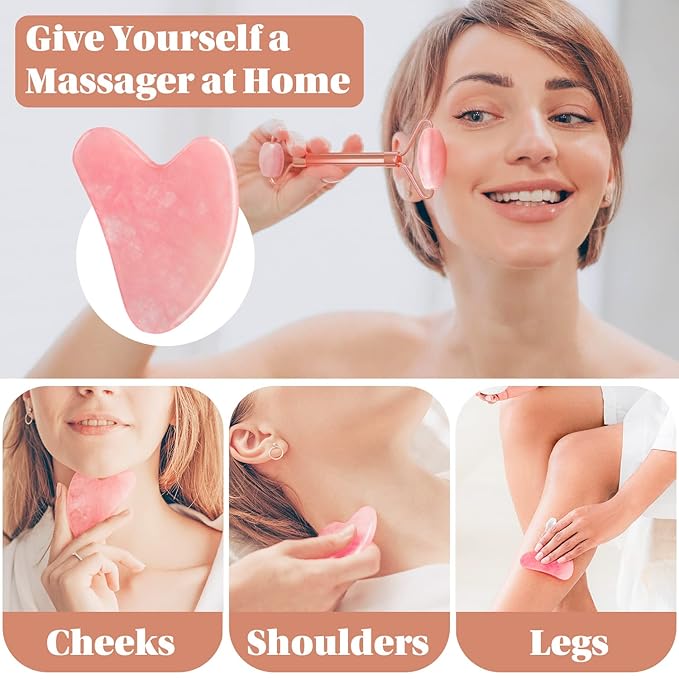 Jade Roller & GuaSha Set-Facial Beauty Roller Skin Care Tools, Rose Quartz Massager for Face, Eyes, Neck, Body to Relieve Wrinkles,Fine Line and Eyepuffiness
