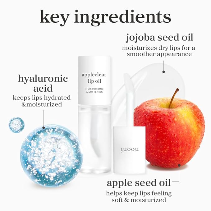 - ABOUT APPLECLEAR LIP OIL: Our lip glow oil is formulated with apple seed oil to instantly moisturize and keep lips smooth. This unique formula helps lips appear glossy, clear, and more kissable and youthful.