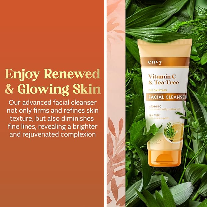 - KOREAN SKIN CARE MAGIC: Discover the power of Envy Facial Cleanser with Vitamin C & Tea Tree, a premium Korean skincare product that enhances your daily routine. Its natural, clean ingredients ensure a gentle yet effective cleanse for radiant, healthy skin.
