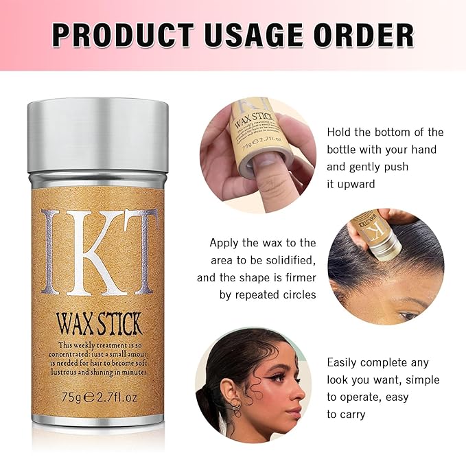 - HOW TO USE HAIR STICK WAX: Push out an appropriate amount of hair wax from the bottom of the easy-to-carry wax stick, apply a small amount of wax to flyaway frizzy parts of the hair to avoid sticking to your hands, and use a comb to help comb your hair for a smoother and shinier look.