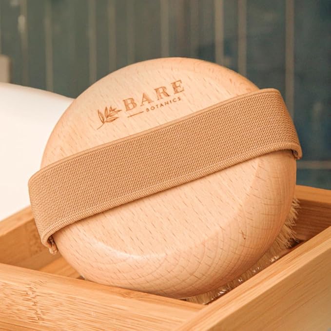 Bare Botanics Dry Body Brush for Lymphatic Drainage - Improve Circulation w/Gentle Exfoliation for Soft Skin - Ergonomically Designed w/Elastic Strap - Soft but Firm Natural Boar Bristles