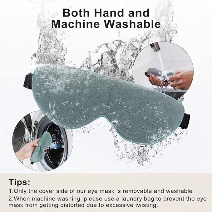 • DETACHABLE & WASHABLE COVER & ADJUSTABLE HEADBAND: The professional eye mask for dry eyes is designed with a detachable and washable cover, allowing for easy cleaning. Regular cleaning not only improves the health index of the eyes but also helps prevent eye infections. Additionally, the soft headband features an adjustable buckle design, high elasticity to ensure a comfortable fit without applying excessive pressure on the eyes.