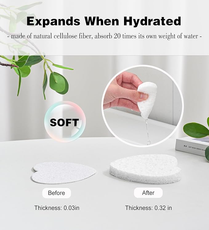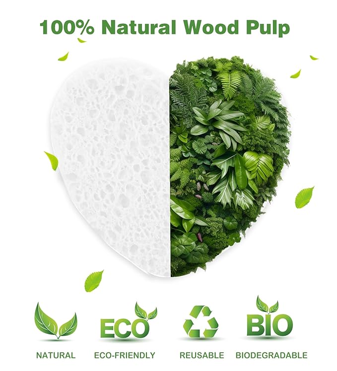 - 【NATURAL & Safe】: Made of 100% natural sponge extracted from wood pulp, environmentally friendly, good absorbency and no irritation to skin.