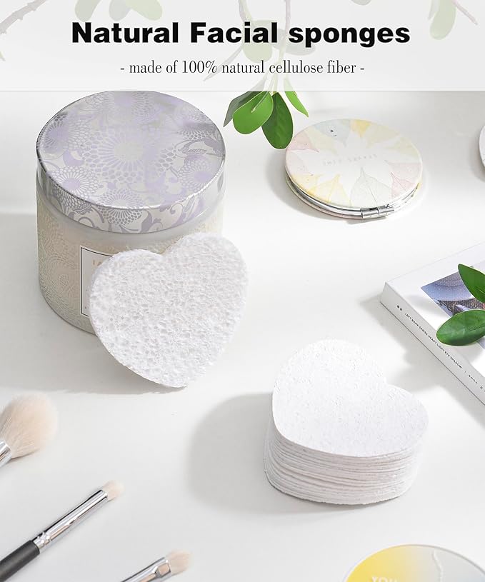 50-Count Compressed Facial Sponges for Estheticians- 100% Natural Cellulose Face Sponge Spa Sponges for Face Cleansing, Massage, Pore Exfoliating, Mask, Makeup Removal (Love-White)
