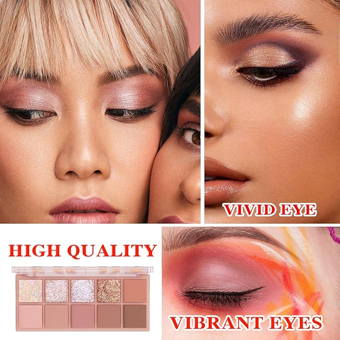 10 Shades Nude Matte Eyeshadow Palette,Shimmer Naked Eyeshadow Palette,Eye Shadow Palette Natural Flash Waterproof Durable Smoked Professional Makeup Palette With Brush 03