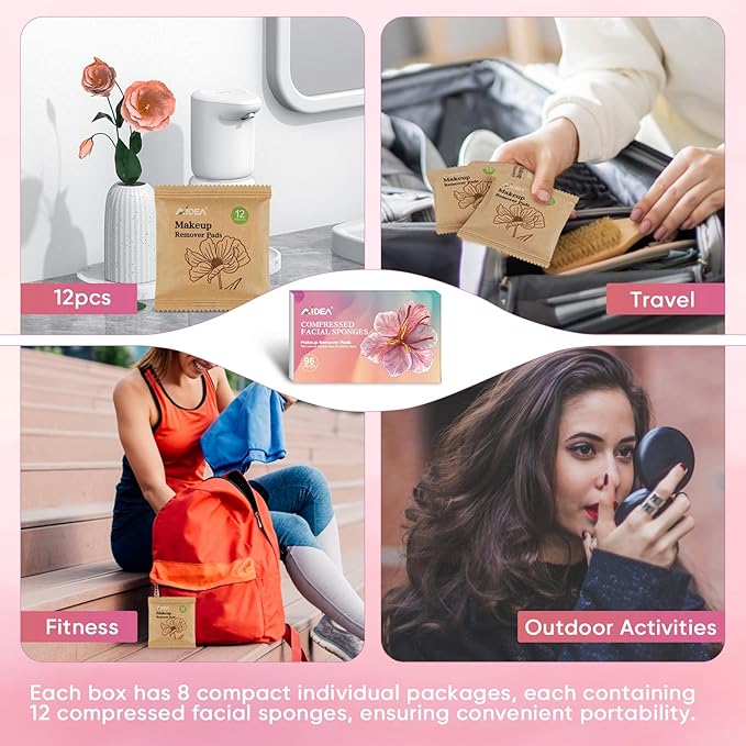 - Portable: Includes 96 count cellulose facial sponges; compact and lightweight design makes them easy to carry in a makeup bag, travel kit, or gym bag; convenient for maintaining your skincare and beauty routine on the go