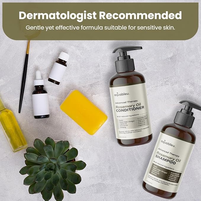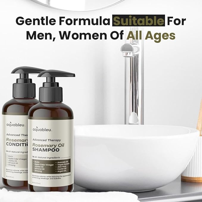 Aquableu Advanced Therapy Anti-Thinning Rosemary Oil Shampoo & Conditioner Set - Infused with 14 All-Natural Ingredients for Volume, Strength, Thickness, and Dullness Reduction (16oz)