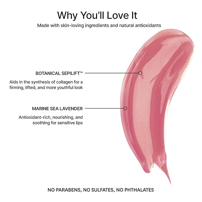 - Crafted with nourishing and antioxidant-rich botanicals, our lip gloss is gentle on sensitive lips while providing a high shine and saturated color payoff. Say goodbye to discomfort and hello to luscious lips.