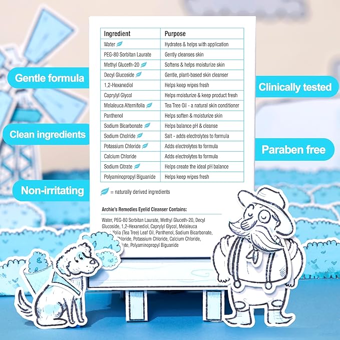 Archie's Remedies Eyelid Wipes and Lid Scrub - 30 Pre-Moistened Wipes - Australian Tea Tree Oil, Paraben-Free, SLS-Free, Phthalate-Free, Ideal for Sensitive Skin and Daily Eye Care