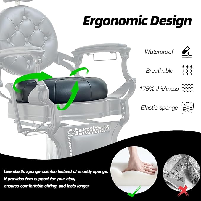 - Comfort and Luxury: This vintage barber chair boasts a spacious 20 "diameter and 4.13" thickened seat, making it more relaxing and enjoyable for your customers to use. Cushions are breathable and easy to clean.