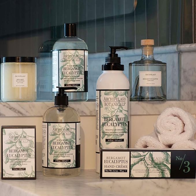 Archipelago Botanicals Bergamot Eucalyptus Lotion, Hydrating Lotion for Rejuvenated and Smooth Skin, Scented Body Lotion Made without Parabens, Phthalates and GMOs (18 oz)