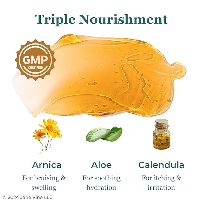 - Experience the Jane Vine Arnica Gel for bruising. Our extra strength formula is designed specifically for thin skin and for soothing bruised skin. Infused with arnica montana, it promotes skin recovery. Gentle yet powerful, this arnica gel is perfect for delicate skin, offering a natural solution to help nourish your skin. Embrace the power of our triple recovery formula with a plant-based, alcohol free arnica gel alternative.