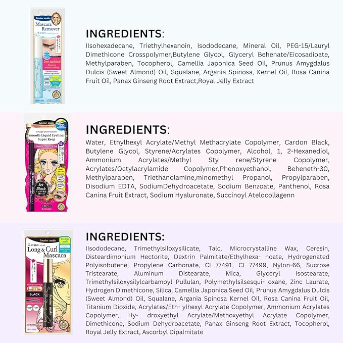 HEROINE MAKE by KISSME Waterproof Mascara Black by Defining Fiber for Long and Curl Eye Makeup for Women + Smooth Liquid Black Eyeliner, Smudge-free + Gentle Mascara Remover Oil Free, 3 Set
