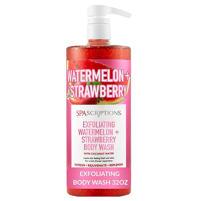 - SWEET ELIXIR OF WATERMELON, STRAWBERRY & COCONUT: Immerse yourself in the uplifting aroma of watermelon, strawberry, and coconut as this body wash exfoliating scrub revitalizes your senses. This coconut body wash delivers a refreshing and fruity scent experience that lingers gently throughout the day. Perfect as a body wash for women or a hydrating coconut body wash for men, it leaves your skin soft, smooth, and beautifully scented without feeling heavy.