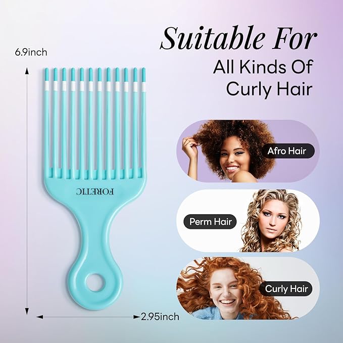 Smooth Hair Pick Comb for Curly, Thick, Medium to Long Hair, Facial -6.9inch(Blue, Pink)