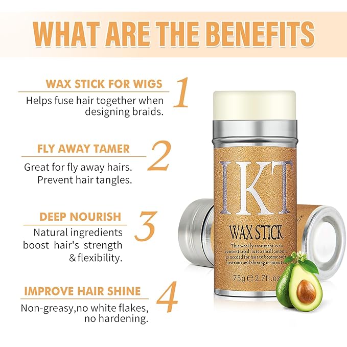 - This wax stick for hair you will get 24 hour long lasting smooth style that is non-sticky, non-greasy, non-flaking and non-residue,just a few simple manipulations to get a satisfying hairstyle