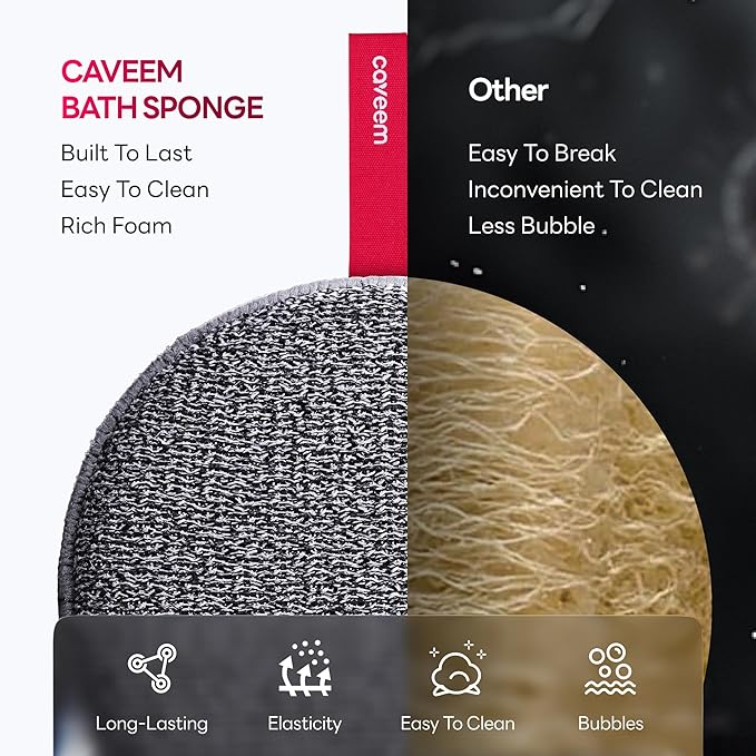 - [REUSABLE HOME AND TRAVEL ESSENTIALS ] Caveem exfoliating body scrubber is reusable, and essential for home and travel use, offering sustainable grooming solutions for your family to comfort themselves. Please gently apply light pressure for optimal exfoliation and comfort