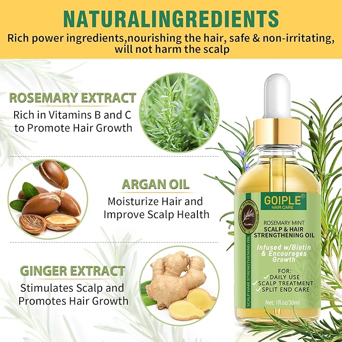 - Rosemary Oil for Hair Growth: Infused with high-quality natural rosemary essential oil, our hair growth oil enhances shine and promotes healthy hair, boosting your confidence with every use