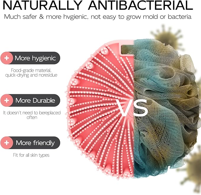 - ECO-FRIENDLY SILICONE: Crafted from safe and durable food-grade silicone, our body bath scrubber is gentle on your skin while still offering effective exfoliation and cleansing.