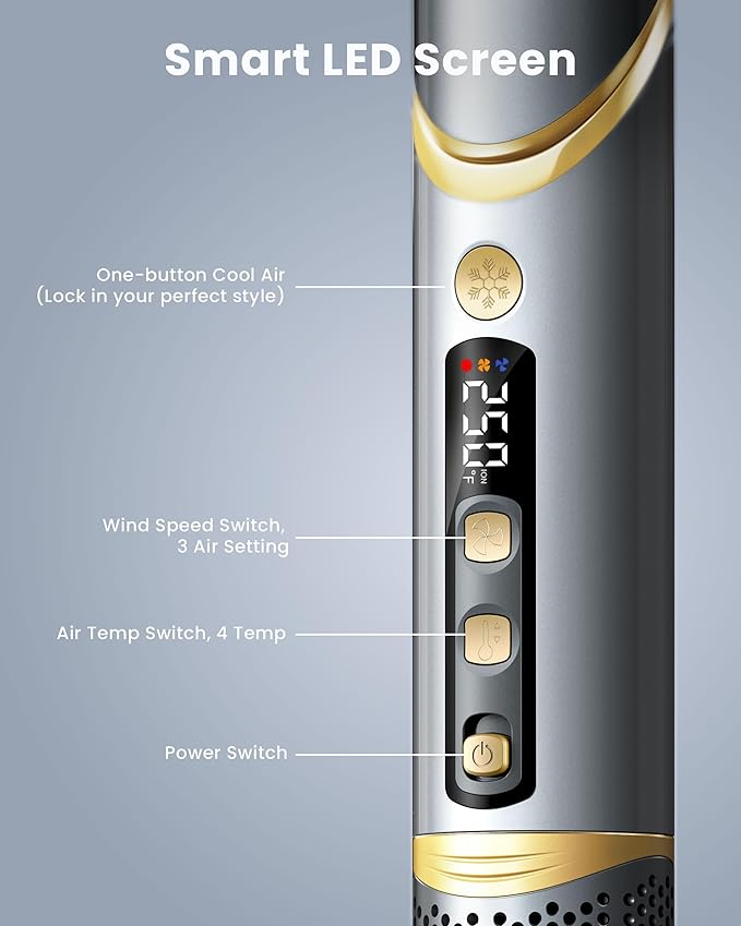 - Easy to Use & Smart LED Screen: The blow dryer brush has 4 temperature seetings(90℉、140℉、200℉、250℉) and 3 airflow adjustments (low-medium-high), which meet the needs of various hair types and styling effects(Easy to creat bouncy curls, sleek straight locks, or voluminous waves). You can control and see every change from the Smart LED Screen. Additionally, the One-button Cool Air allows the hair dryer to blow high-speed cool air just in one second. Lock in your perfect style