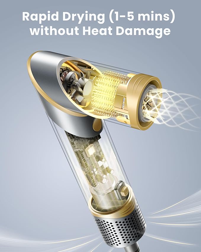 - High Speed Hair Dryer: Our hair dryer was developed with a high speed motor that can reach 110,000 RPM, this hair dryer brush produces a powerful airflow (21M/s) that is 10 times more powerful than ordinary styling tools. Blow dry hair super fast in 1-5 minutes while minimizing heat damage, leaving hair smooth, frizz-free and shiny