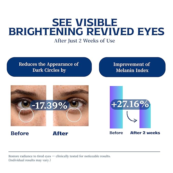 - Brightening Power – Niacinamide and Caffeine help reduce dark circles and puffiness, soothe tired skin, and brighten dull under-eyes for a more revitalized look.