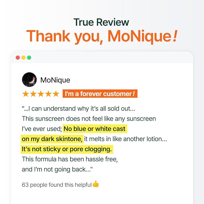 - [ No White Cast ] Designed for all skin tones, this sunscreen absorbs seamlessly with zero white cast. The breathable, non-greasy texture glides on smoothly, keeping skin fresh and comfortable.
