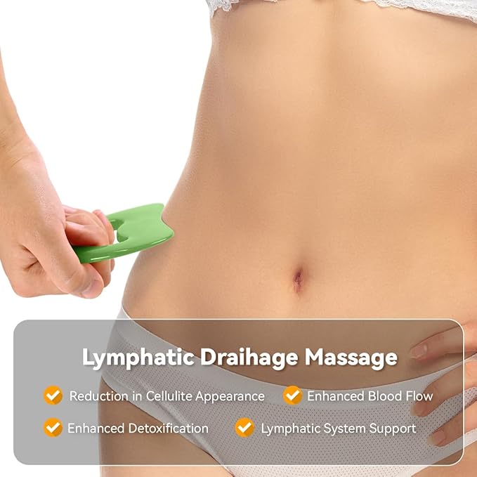 Body Gua Sha Tool Cellulite Guasha Tool for Body Body Massage Tools (Natural Resin) Lymphatic Drainage Tool Guasha Tool for Face,Back, Legs, Women's Body Shaping Tools (Green)