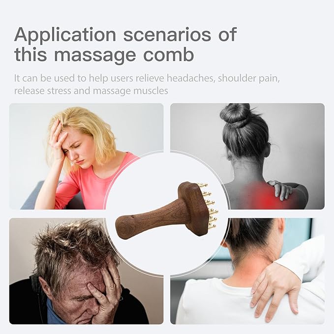 - HIGH QUALITY COPPER AND WOOD: This massage comb is made of high quality copper, the material is sturdy and durable, the surface of the teeth comb is smooth, more close to the body; can be grasped and gripped by the wooden handle; and is more durable, better massage effect